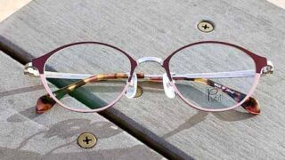 やさしい丸みのレンズシェイプですが肌映りの良い淡いピンクにアクセントのあるボルドーラインが表情をキュッと引き締めます。