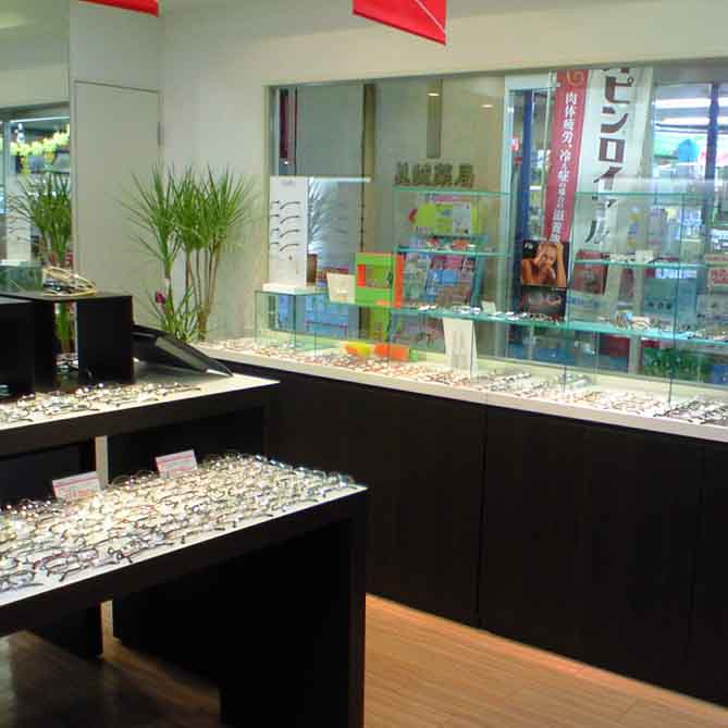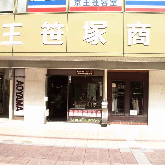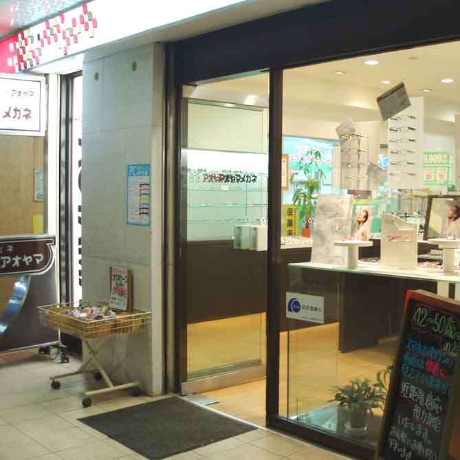 現在の店舗で営業を始める前までは隣接する京王笹塚商店街ビル(現笹塚テラス)で44年間営業をしておりました。2008年4月に店内を大幅に改装リニューアルし、その後、京王笹塚商店街ビル再開発に伴い2015年4月に現在の店舗に移転しました。 それまであった京王笹塚商店街では毎年夏まつりが行われ、焼き鳥・ビールでライブや演奏など賑やかな思い出がありました。下記の写真は2015年3月までのアオヤマメガネの旧店舗の様子です。